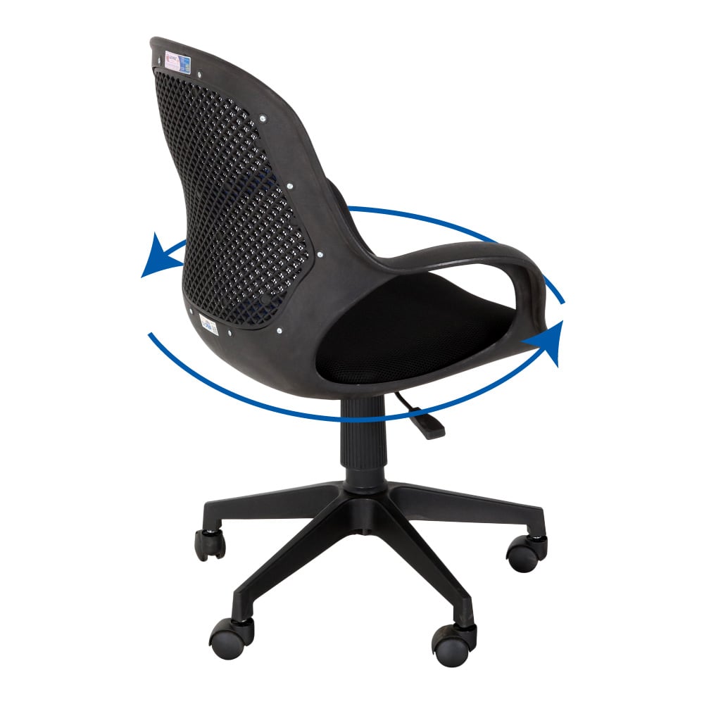 Ghế xoay nhân viên lưới DONA Qui Phúc có kiểu dáng hiện đại, khỏe khoắn. Phần khung ghế là nhựa PP nguyên khối, cứng cáp, khối lượng nhẹ. Lưng ghế có độ cong tự nhiên ôm sát cơ thể. Lưng ghế dạng lưới thoáng khí không gây hầm bí phần lưng khi ngồi lâu. Mặt ngồi nệm lưới dày êm ái, thấm hút tốt tạo cảm giác êm ái, dễ chịu khi sử dụng.